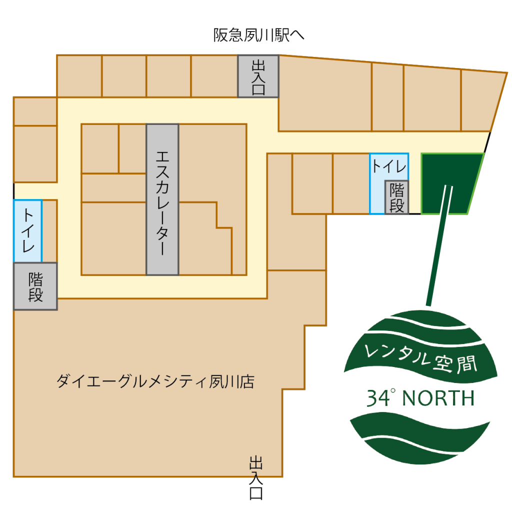 レンタル空間34°NORTHを以下、当店及び当方と表示します。